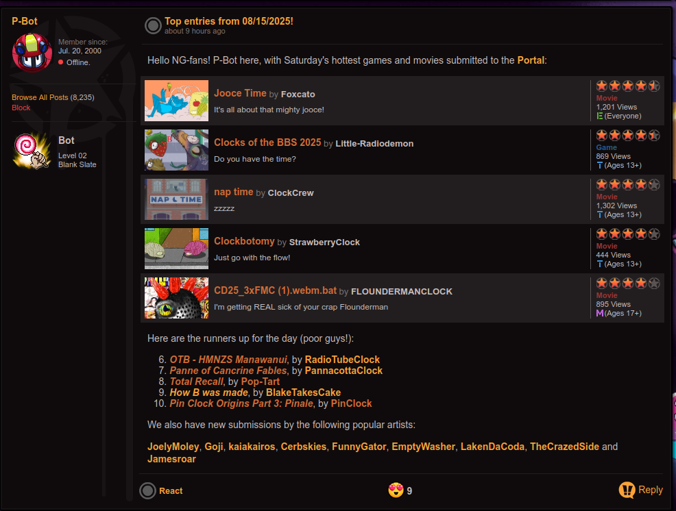 Quote from: FLOUNDERMAN_CLOCK on August 14, 2025, 11:11:41 PMI reached rank 666 and unlocked the necronomicon it's a clock day unmiracle
