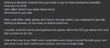 Lmao @ all the idiots complaining about having to pay 100 bucks to upgrade an account to submit to Greenlight.